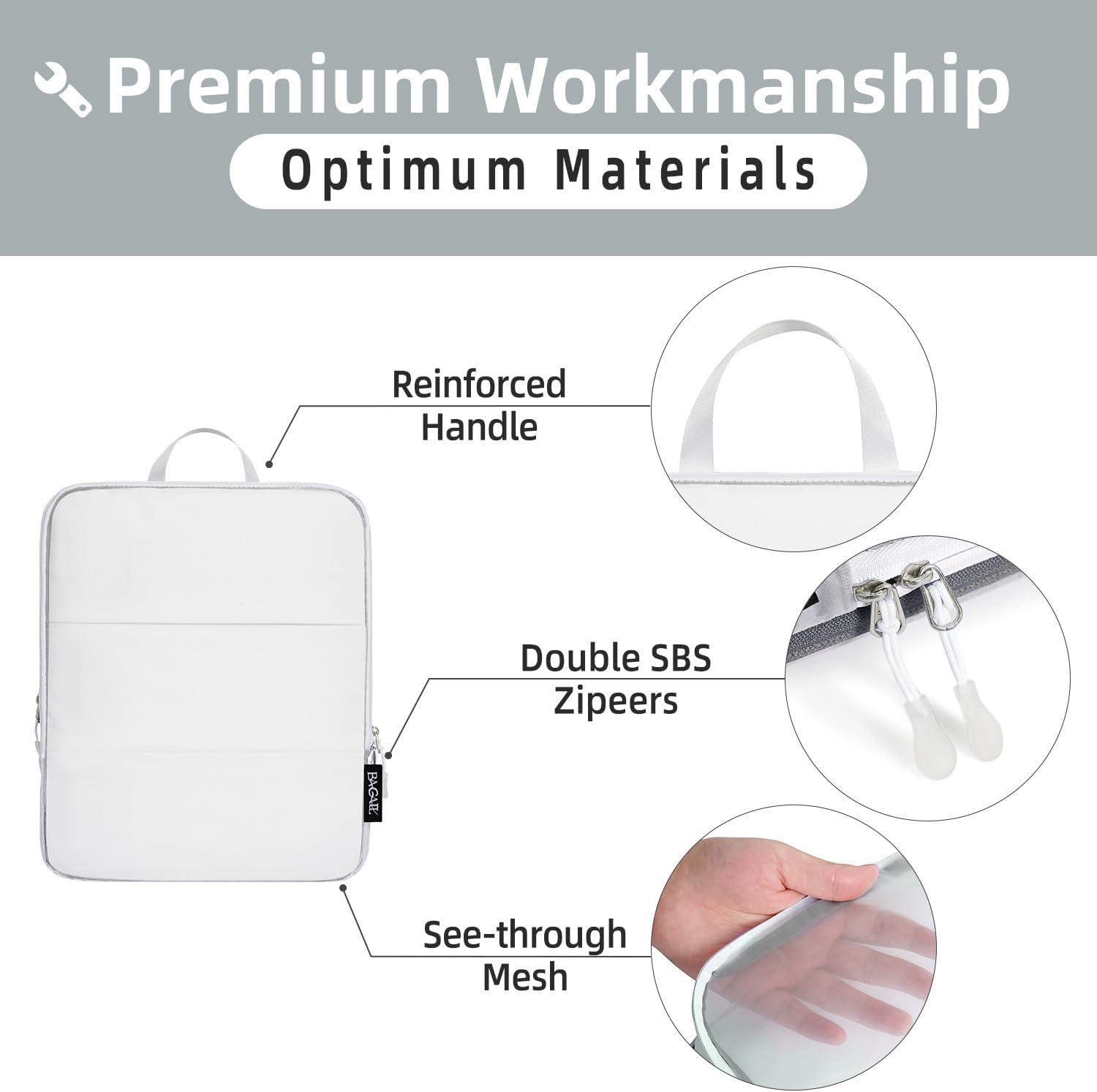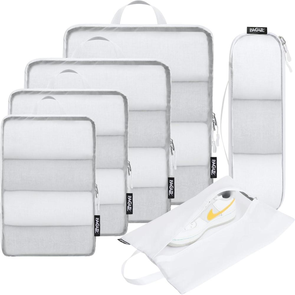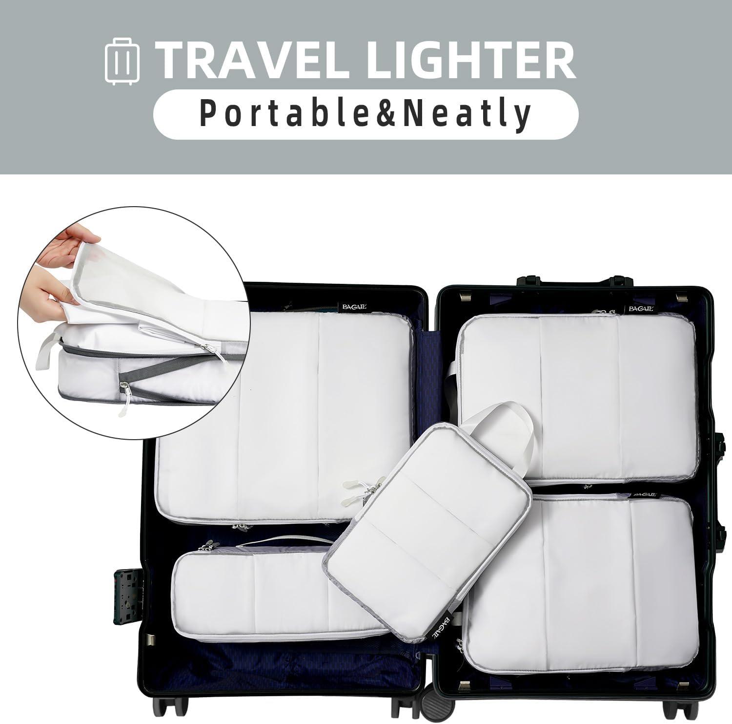 BAGAIL 5 Set/6 Set Ultralight Compression Packing Cubes Travel Accessories Expandable Packing Organizers(6-White)