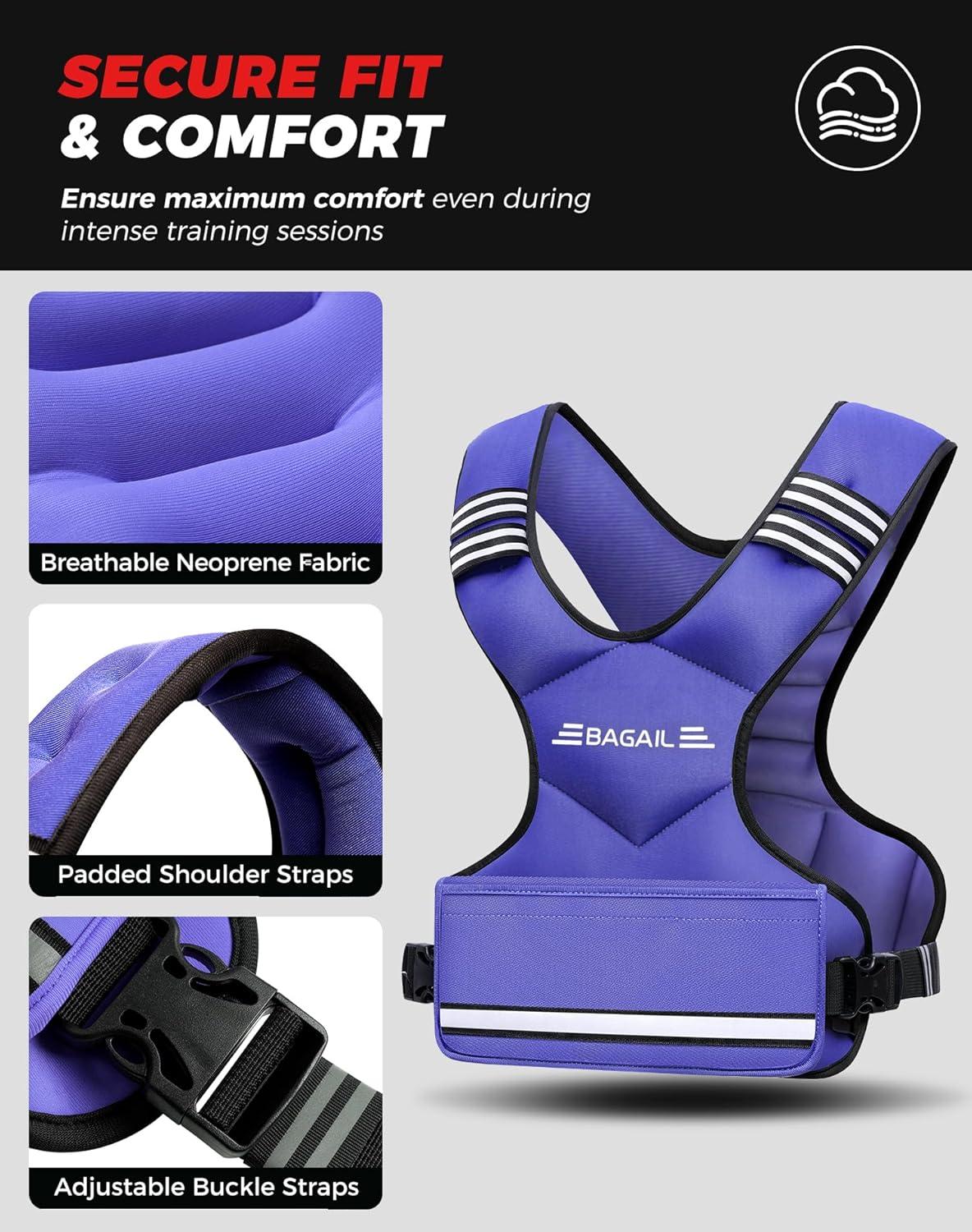 Breathable & Comfortable: Made with premium neoprene & soft iron sand fill, this weighted vest for men and women ensures even weight distribution and a secure fit during high-intensity workouts. The extra-wide padded shoulder straps reduce pressure, while elastic bands provide full mobility without restriction