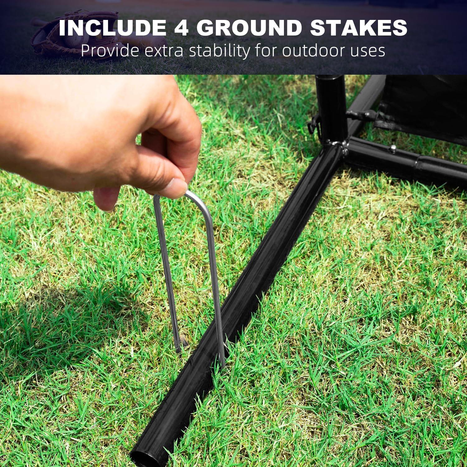 Rock-Solid Durability: The heavy-duty T-frame base and fiberglass poles provide sturdy support to withstand heavy throws. 4 ground stakes are included to prevent wind blow-overs. The powder-coated rust-proof surface means training in all weather
