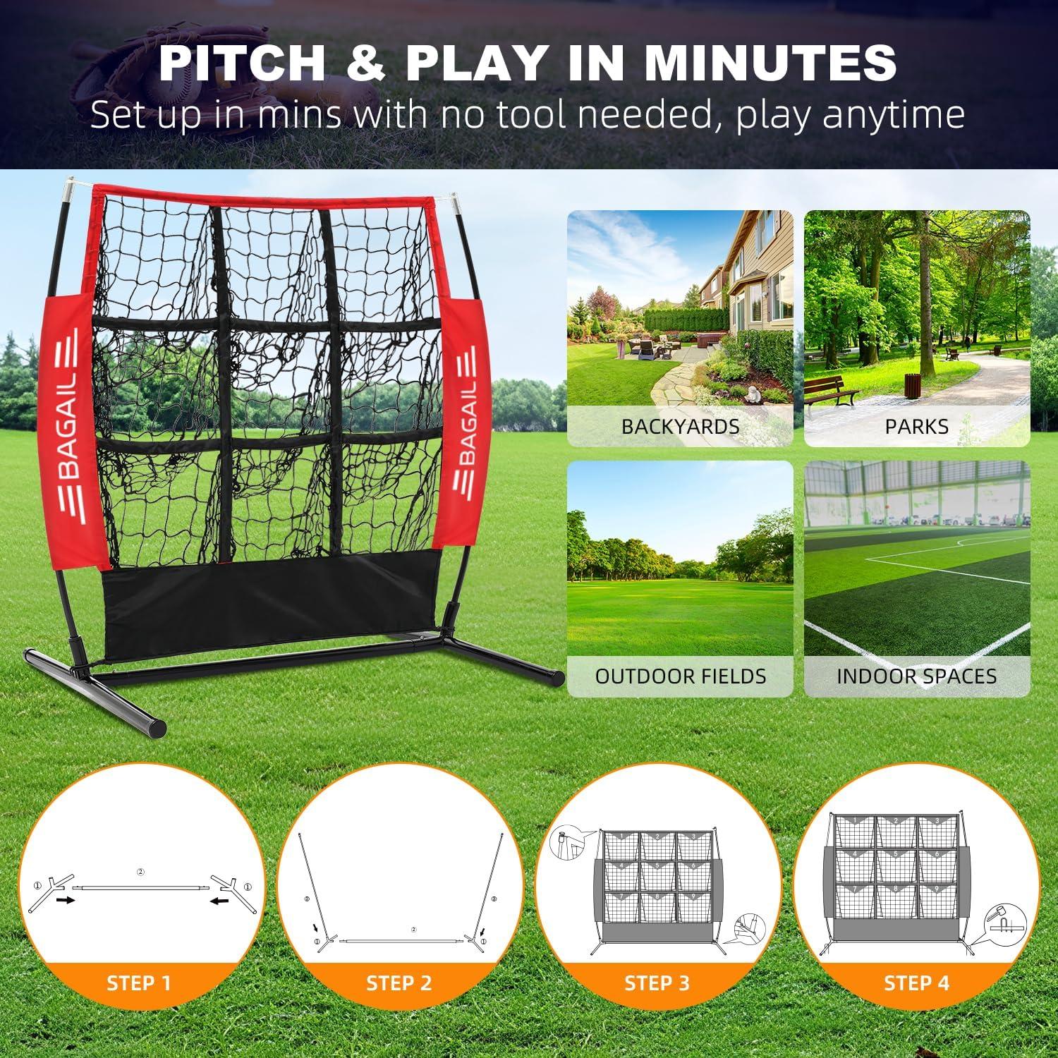 Precise Practice with the 9-Pocket Net: Featuring 9 individually numbered ball collecting pockets, this baseball and softball pitching net enables targeted training through visible placement feedback. Gone are generalized areas – instead, track the location of each pitch or hit. As sessions accumulate, you'll feel control and consistency improving sharply