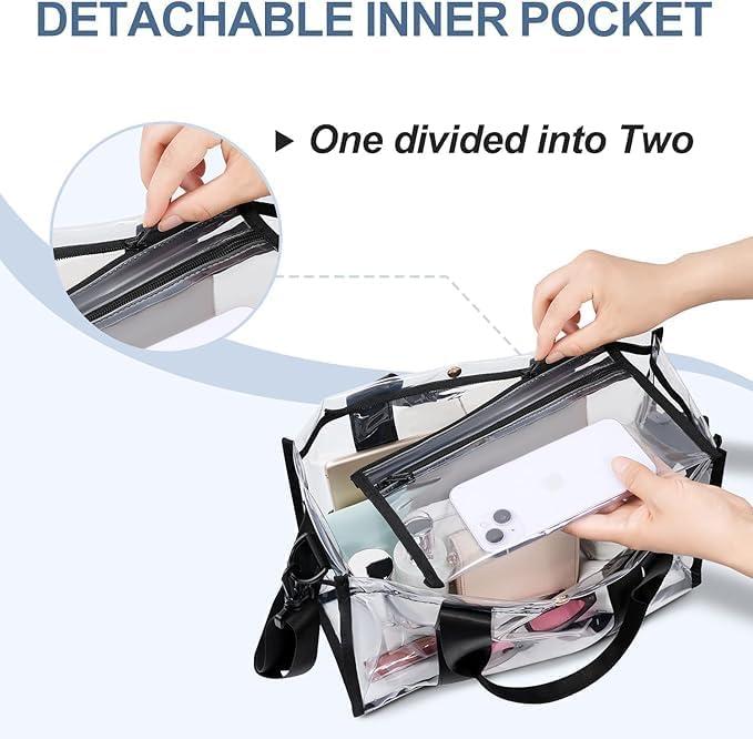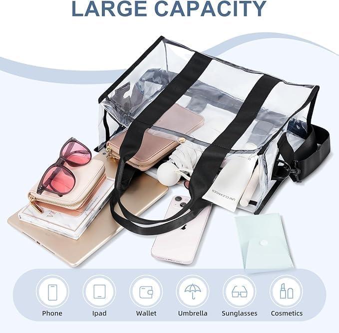 BAGAIL Clear Bag Stadium Approved Crossbody Shoulder Messenger and Clear Tote Bag with Separate Zippered Pouch