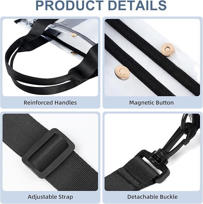 BAGAIL Clear Bag Stadium Approved Crossbody Shoulder Messenger Clear Purse with Adjustable Strap. BAGAIL Clear Bag Stadium Approved, Clear Tote Bag with Separate Zippered Pouch, PVC Travel Bag with Adjustable Strap and Reinforced Handle