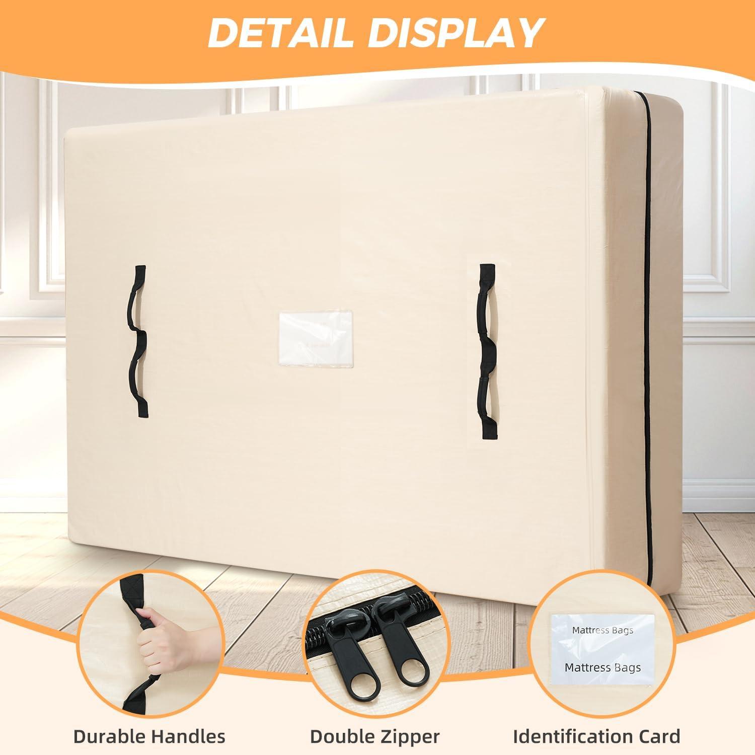 Easy Carrying: The mattress cover comes with Full-Around sturdy handles for easy carrying and a smooth zip for effortless sealing and easy access to the mattress when needed. Adjustable buckle straps to reduce excessive slack for easier transportation
