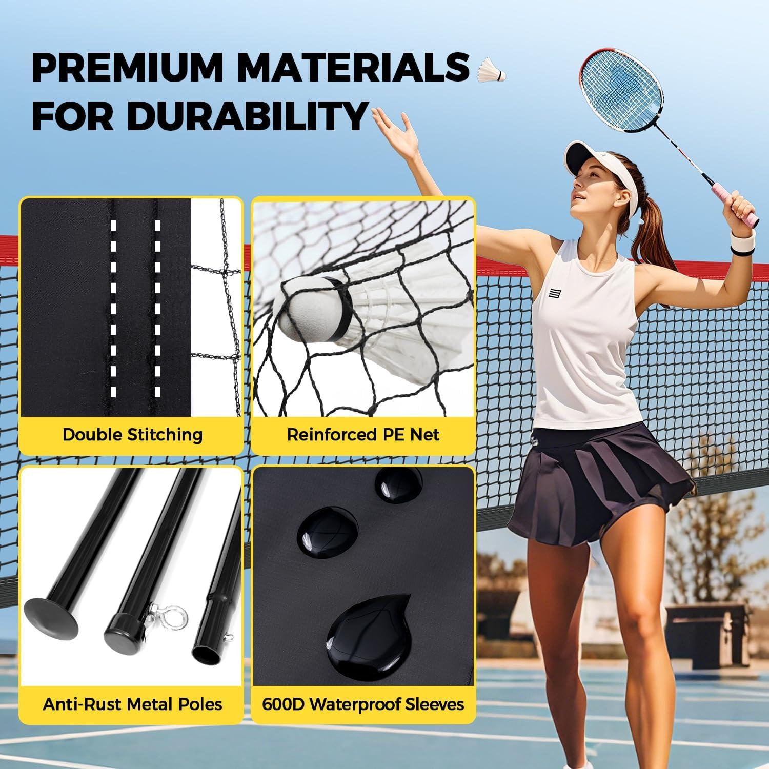 Official Tournament Standard: Meet regulation specs with a 20ft x 5.1ft net (LxH). Includes EVERYTHING: 1 knot-less PE net, 4 lightweight fiberglass rackets, 3 durable shuttlecocks, and a 600D Oxford carry bag. Ideal for 4-player family tournaments