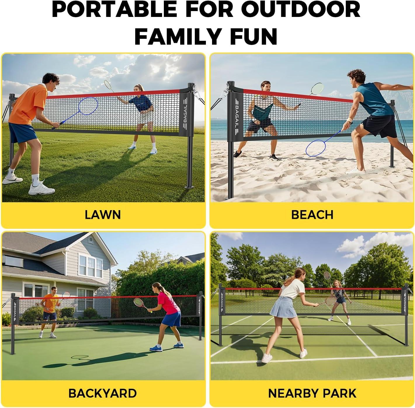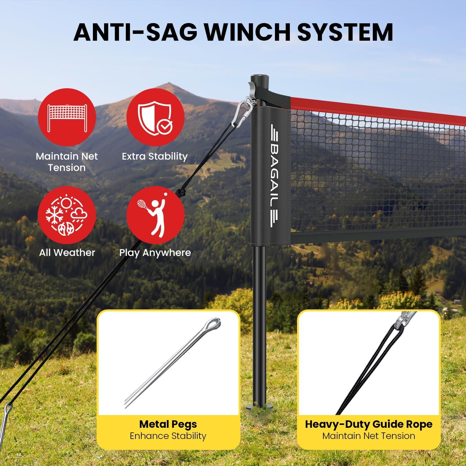 Pro-Grade Tension & Stability: Features an upgraded anti-sag winch system with 2 heavy-duty ropes and 4 rust-proof metal stakes, ensuring the net stays tournament-tight even during intense matches. No more sagging or readjustments!