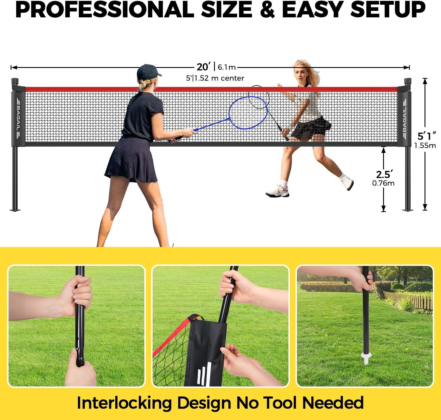 BAGAIL Outdoor Badminton Net Set with Anti-Sag Winch System – Official Size 20ft x 5ft, 4 Rackets, 3 Shuttlecocks, Durable PE Net & Carry Bag for Backyard, Beach, Family Games(Red)