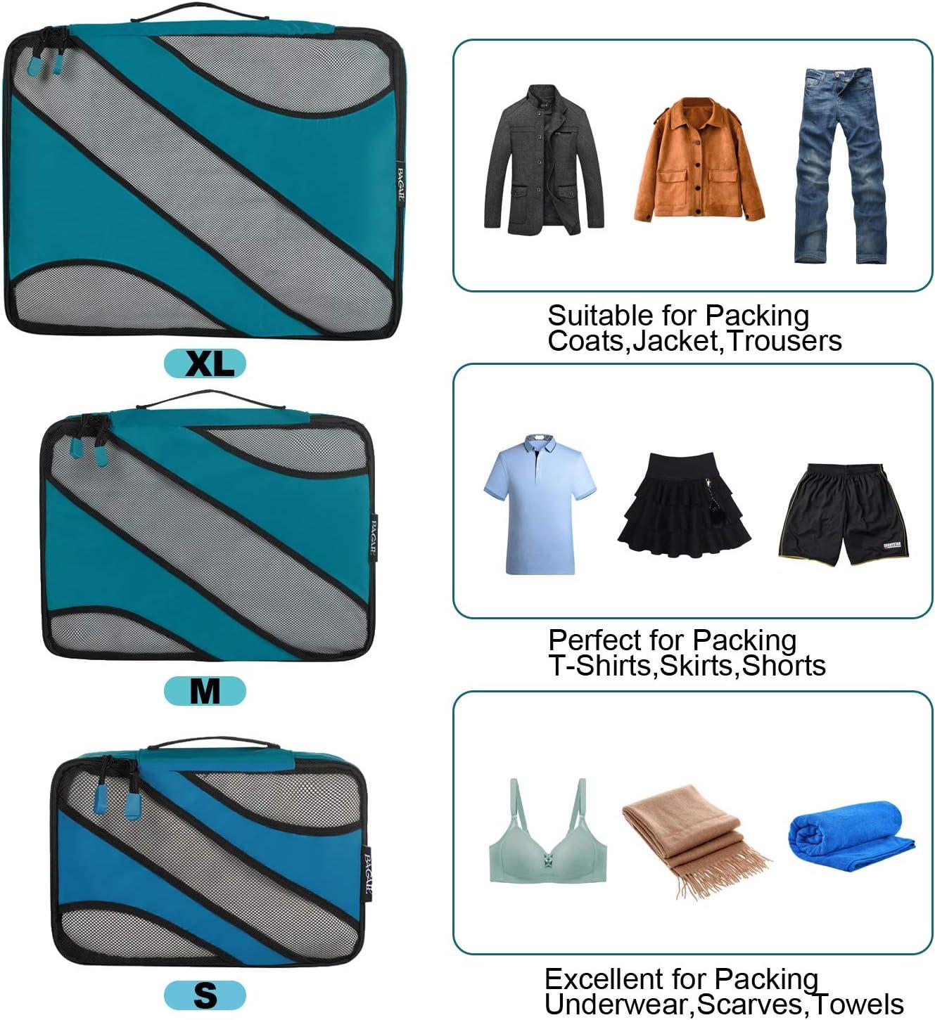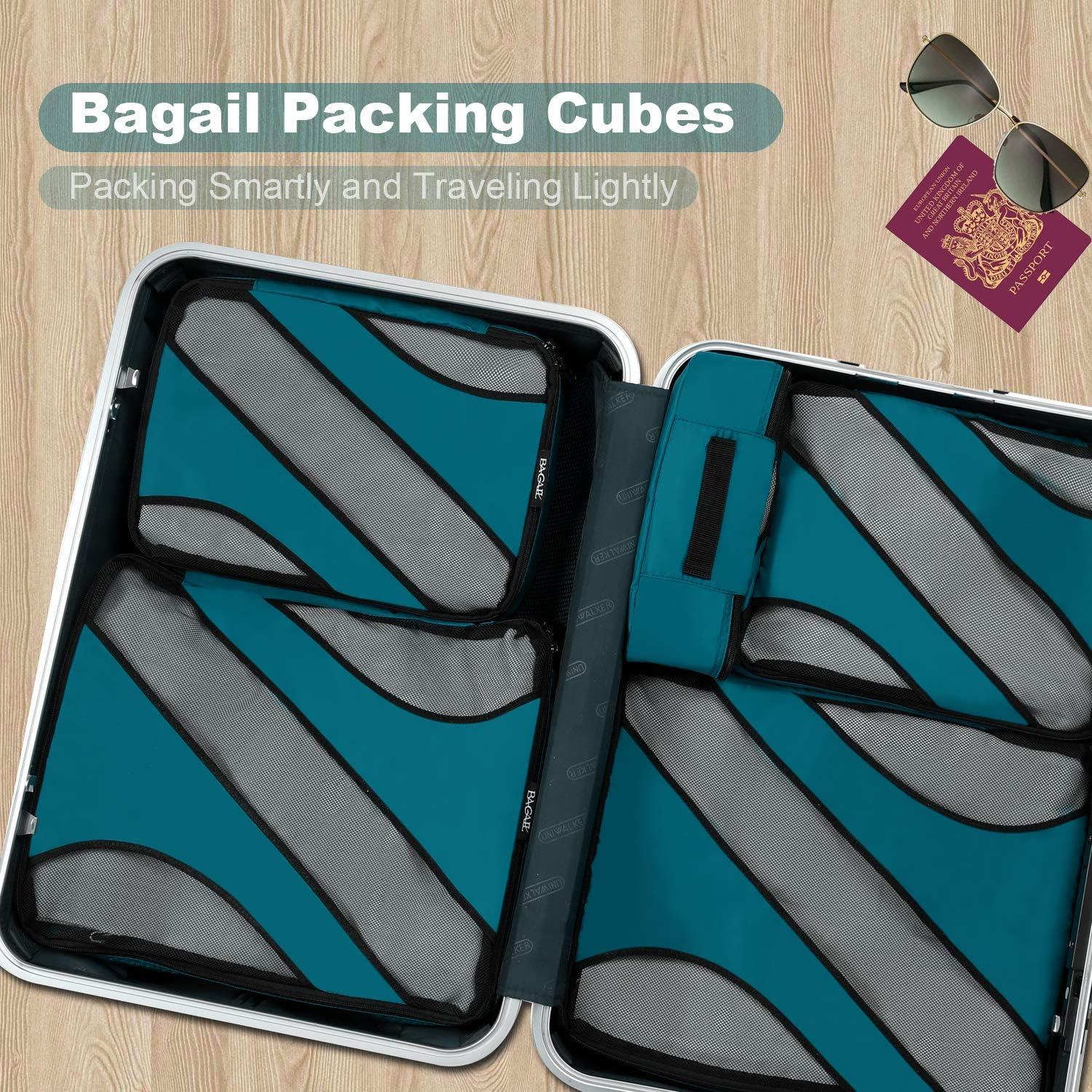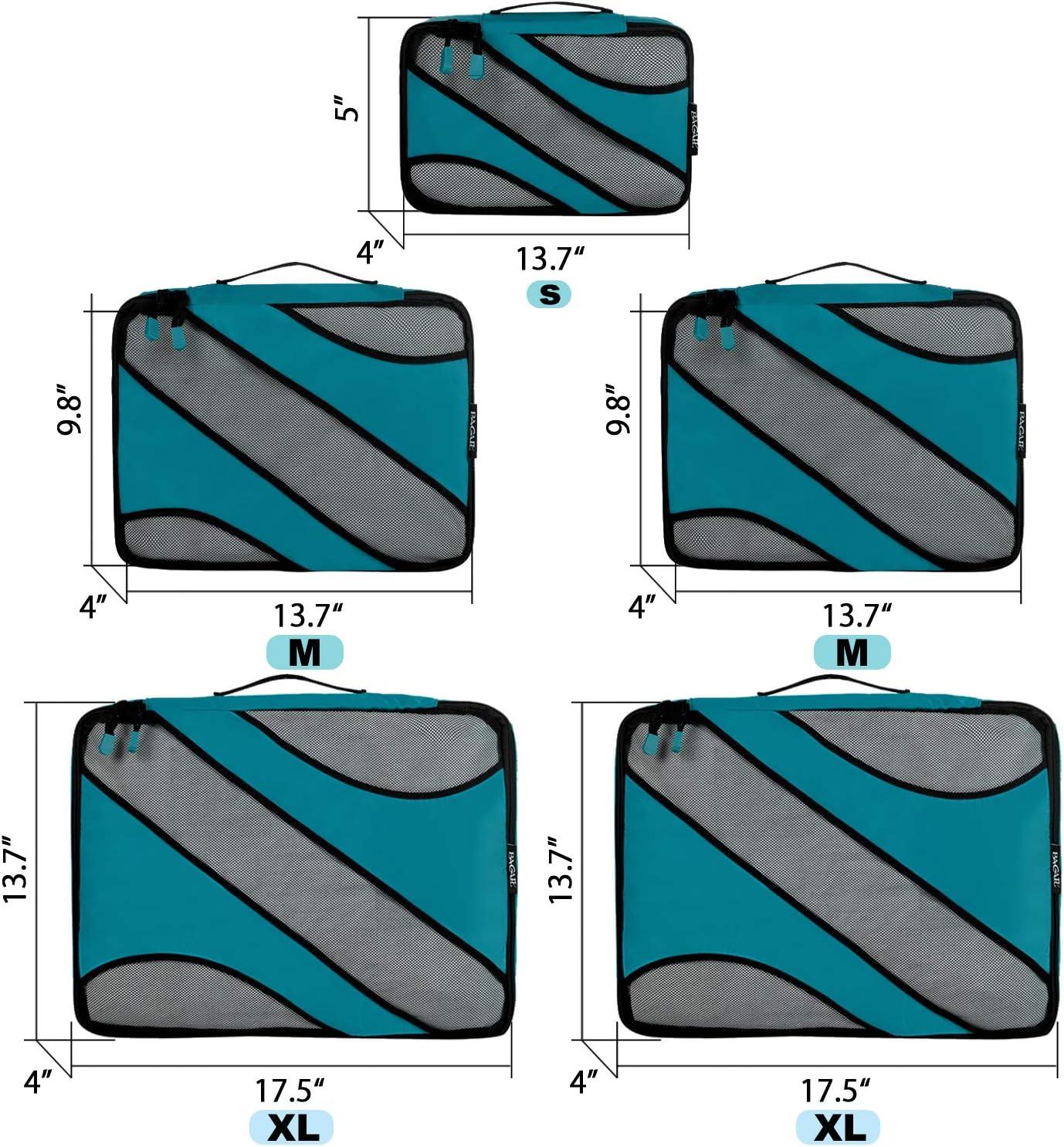BAGAIL Packing Cubes Luggage Carry On Suitcases Packing Organizers for travel 5 Set- 1 Small, 2 Medium, 2 Extra Large(Teal)