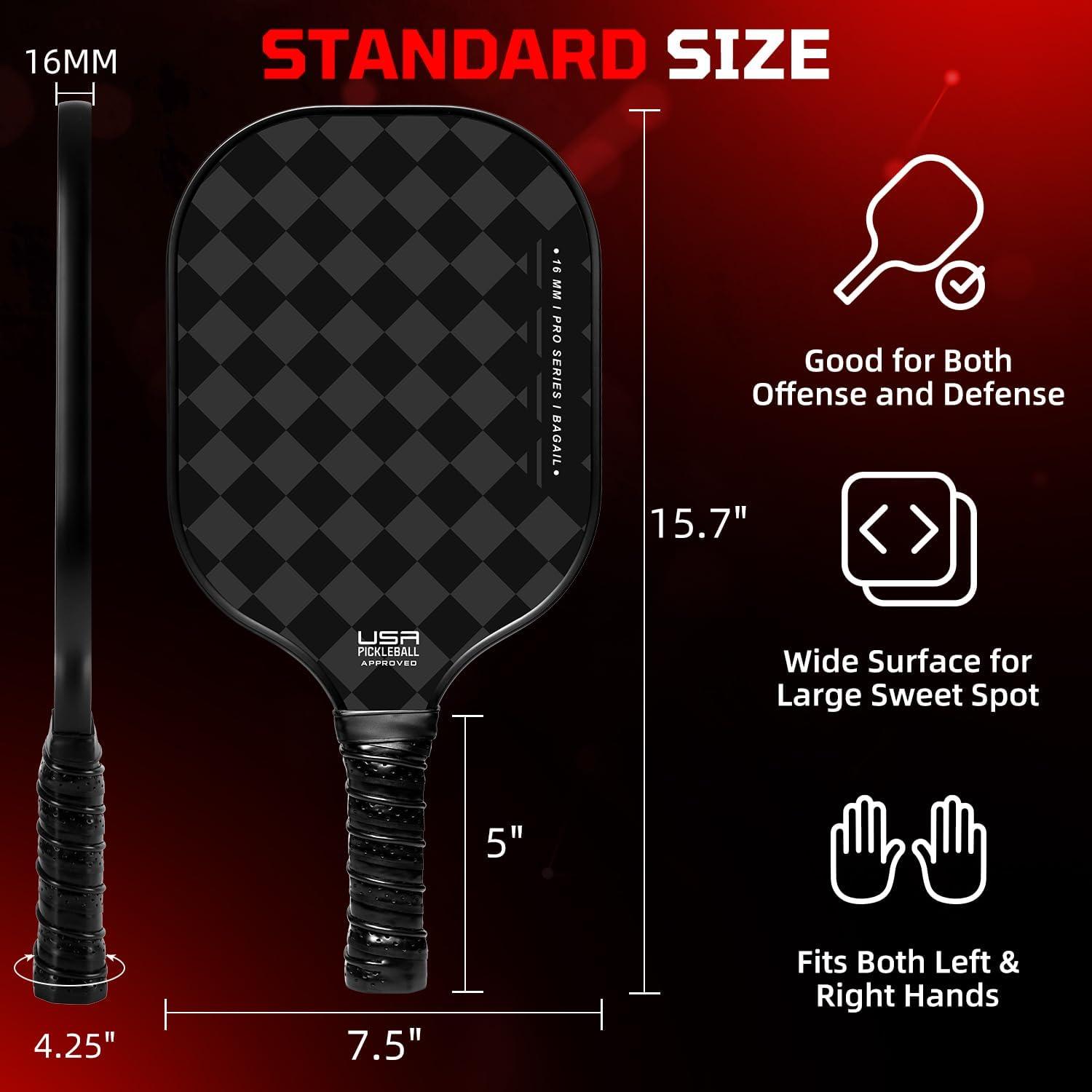 BAGAIL Pickleball Paddles, USAPA Approved Fiberglass Surface Pickleball Set, Lightweight Pickle Ball Rackets with 4 Balls, 1 Bag, Designed in California for Traction and Stability(Chessboard)