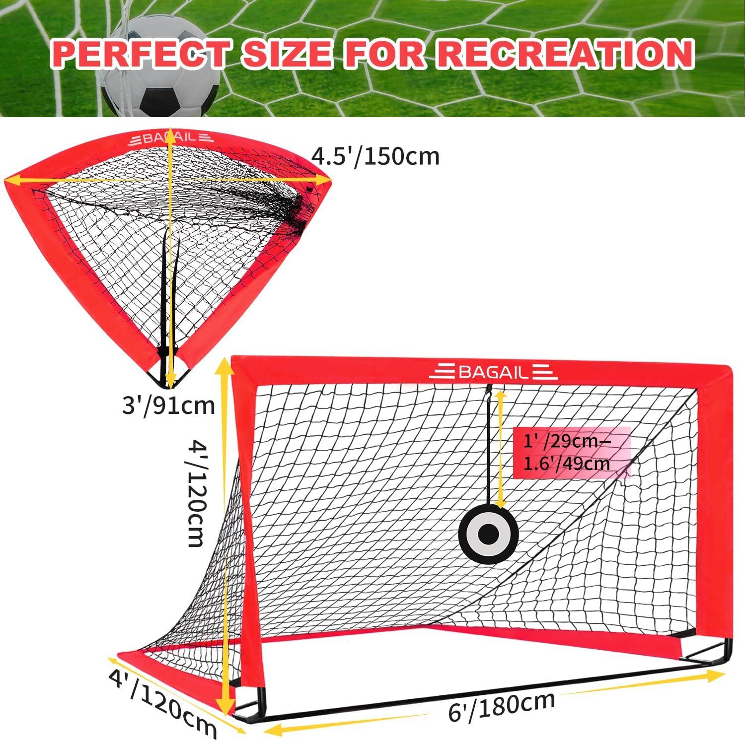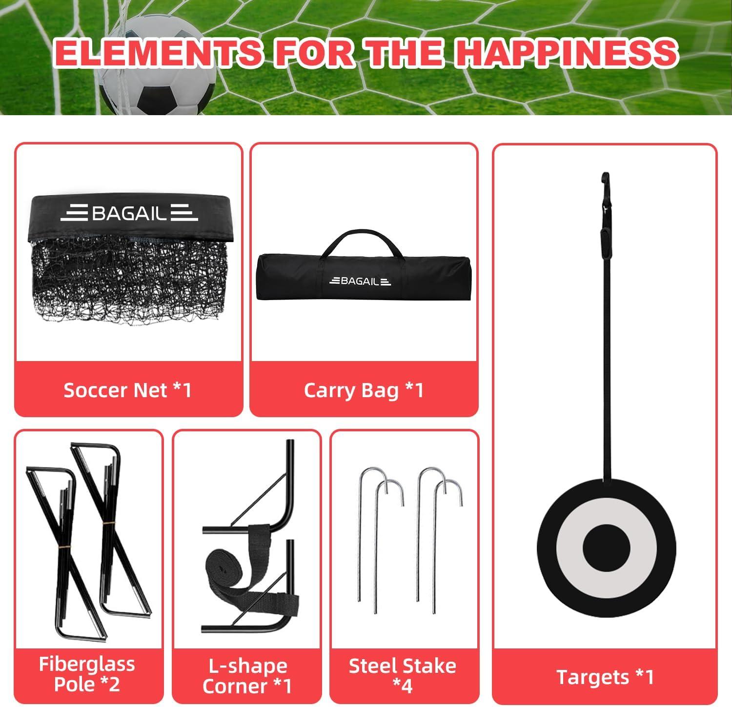 Ideal Size and Options: Available in 2 sizes (L*W*H: 4*3*3 ft /6*4*4 ft) and 2 kinds of sets, Bagail offers more fun choices. Our goal nets are ideal for soccer training and fun games. Enjoy playing at home, in the yard, on the beach, or any grassy area